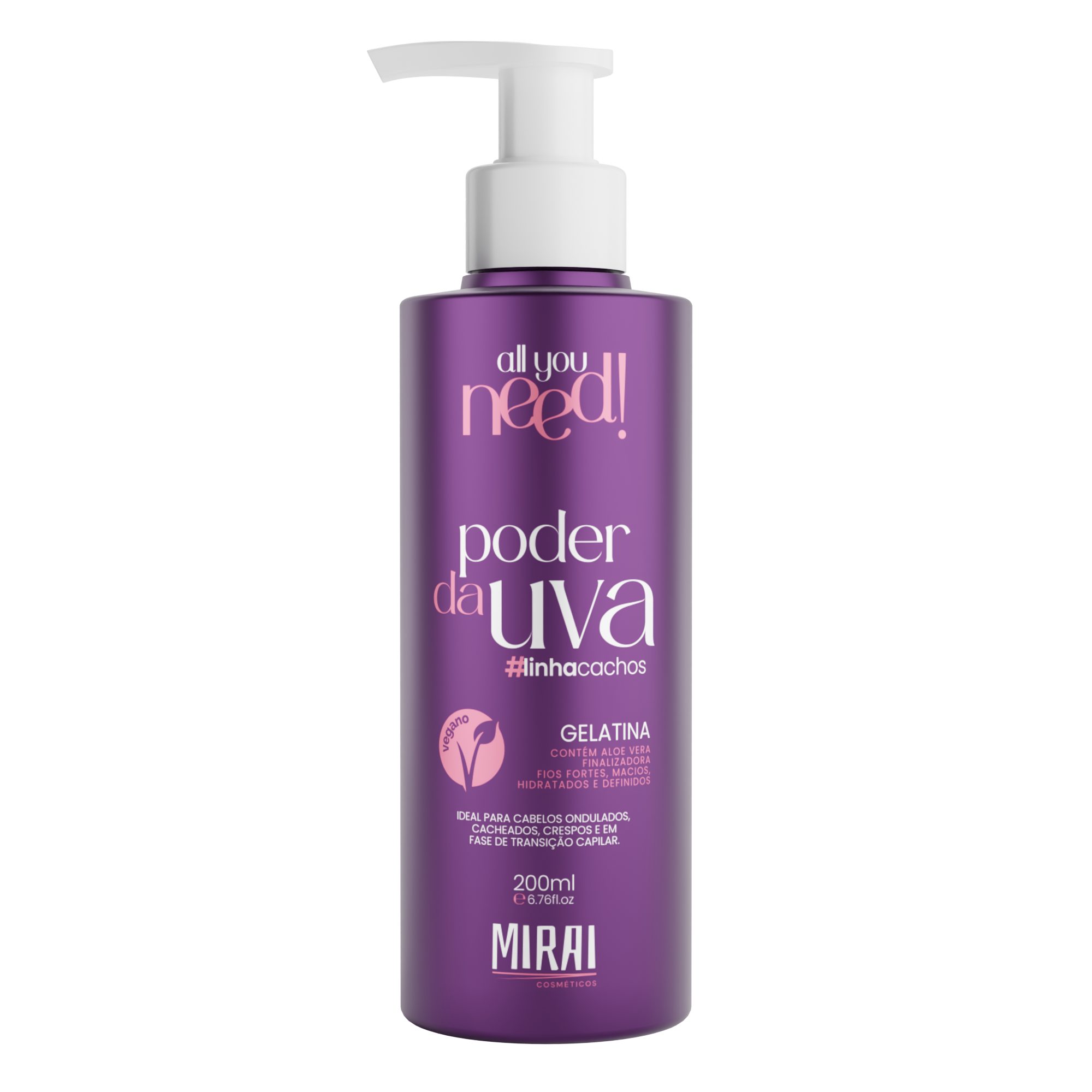 A Gelatina Poder da Uva é perfeita para definir e modelar os cachos sem deixá-los rígidos. Com Aloe Vera e ativos hidratantes, proporciona fixação leve a média, controla o frizz e mantém os fios maleáveis, hidratados e com brilho natural.